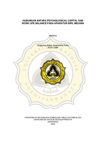 PUTRA, GREGORIUS ABBEL JOHANANTHA (2024) HUBUNGAN ANTARA PSYCHOLOGICAL CAPITAL DAN WORK LIFE BALANCE PADA APARATUR SIPIL NEGARA. S1 thesis, UNIVERSITAS KATOLIK SOEGIJAPRANATA.