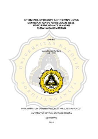 RUNTUNG, MARIA BUNGA (2024) INTERVENSI EXPRESSIVE ART THERAPY UNTUK MENINGKATKAN PSYCHOLOGICAL WELL- BEING PADA ODHA DI YAYASAN RUMAH AIRA SEMARANG. S1 thesis, UNIVERSITAS KATOLIK SOEGIJAPRANATA.