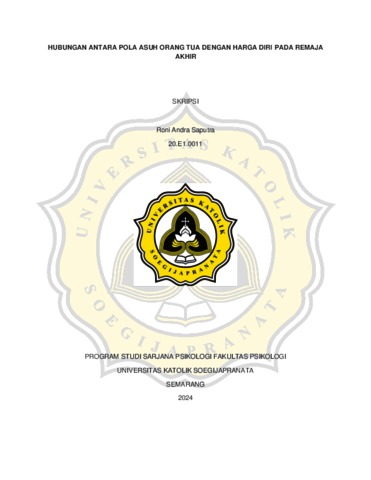 SAPUTRA, RONI ANDRA (2024) HUBUNGAN ANTARA POLA ASUH ORANG TUA DENGAN HARGA DIRI PADA REMAJA AKHIR. S1 thesis, UNIVERSITAS KATOLIK SOEGIJAPRANATA.
