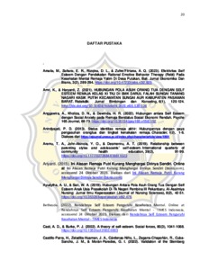 Abstrak Tujuan penelitian ini yaitu mengetahui hubungan antara pola asuh acceptance- involvement, psychological autonomy-granting dan behavioral strictness supervision dengan harga diri (self-esteem) pada remaja akhir. Terdapat tiga hipotesis yang diajukan pada penelitian yaitu pertama terdapat hubungan antara pola asuh orang tua acceptance-involvement terhadap harga diri, kedua terdapat hubungan antara pola asuh orangtua psychological autonomy-granting terhadap harga diri, ketiga terdapat hubungan antara pola asuh orangtua behavioral strictness supervision terhadap harga diri. Subjek penelitian ini adalah remaja akhir yang ada di Semarang. Jumlah remaja akhir yang terlibat dalam penelitian ini adalah 223 remaja. Alat ukur yang digunakan yaitu Rosenberg Self – Esteem Scale bahasa Indonesia dan skala Steinberg Parenting Styles Scale yang sudah teruji validitas dan reliabilitasn. Proses penyebaran skala menggunakan google form. Uji hipotesis penelitian menggunakan uji korelasi product moment miliki Pearson. Hasil penelitian menunjukkan korelasi yang signifikan antara acceptance-involvement dan harga diri (r = 0,341, p<0,05) dan psychological autonomy-granting dan harga diri (r= -0,213, p <0,05) sedangkan, pada behavioral strictness supervision terhadap harga diri menunjukkan korelasi yang tidak signifikan. Disimpulkan bahwa Hipotesis antara acceptanceinvolvement terhadap harga diri dan Hipotesis psychological autonomy-granting terhadap harga diri dapat diterima sedangkan Hipotesis antara behavioral strictness supervision terhadap harga diri.tidak dapat diterima. Kata Kunci: harga diri, pola asuh, remaja akhir