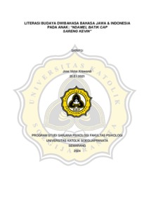 KRISWANDI, JOSE VICTOR (2024) LITERASI BUDAYA DWIBAHASA BAHASA JAWA & INDONESIA PADA ANAK: “NDAMEL BATIK CAP SARENG KEVIN”. S1 thesis, UNIVERSITAS KATOLIK SOEGIJAPRANATA.
