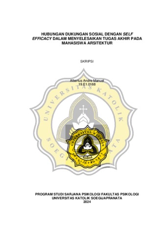 MANUEL, ALBERTUS ANDRE (2024) HUBUNGAN DUKUNGAN SOSIAL DENGAN SELF EFFICACY DALAM MENYELESAIKAN TUGAS AKHIR PADA MAHASISWA ARSITEKTUR. S1 thesis, UNIVERSITAS KATOLIK SOEGIJAPRANATA.