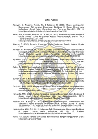 ABSTRAK Penelitian ini bertujuan untuk mengetahui hubungan kepercayaan diri dengan kecemasan berbicara di depan umum pada mahasiswa di Kota Semarang. Hipotesis yang diajukan dalam penelitian ini yaitu ada hubungan negatif antara kepercayaan diri dengan kecemasan berbicara di depan umum. Semakin tinggi kepercayaan diri maka semakin rendah kecemasan berbicara di depan umum. Dalam penelitian ini ada 100 responden mahasiswa masih aktif berkuliah di Kota Semarang. Teknik sampling yang digunakan dalam penelitian ini adalah accidental sampling. Skala dalam penelitian ini yaitu skala kepercayaan diri dan skala kecemasan berbicara di depan umum. Metode analisis penelitian yang digunakan adalah Product Moment Pearson. Berdasarkan hasil uji hipotesis korelasi diperoleh nilai rxy =-638, p= 0.000 (p<0,01), artinya ada hubungan yang sangat signifikan antara kepercayaan diri dengan kecemasan berbicara di depan umum. Dengan demikian maka dapat disimpulkan bahwa hipotesis dalam penelitian ini diterima. Kata kunci: kepercayaan diri, kecemasan berbicara di depan umum, mahasiswa