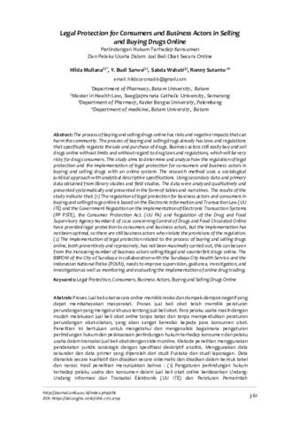 SARWO, YOHANES BUDI and Muliana, Hilda and Wahab, Sabda and Ronny, Sutanto Legal Protection for Consumers and Business Actors in Selling and Buying Drugs Online. SOEPRA Jurnal Hukum Kesehatan. ISSN 2548-818X (media online)
