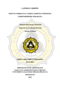 TOMASOWA, AMELLA BEATRICE (2025) GEDUNG SERBAGUNA GEREJA KRISTEN INDONESIA GEREFORMEERD SEMARANG. S1 thesis, UNIVERSITAS KATOLIK SOEGIJAPRANATA.