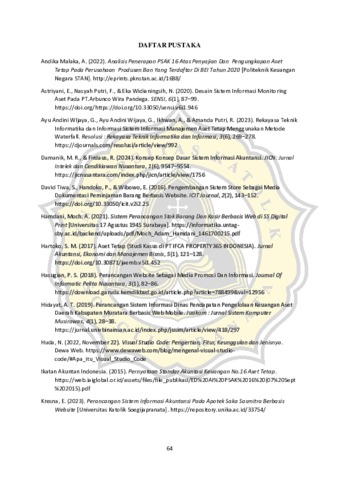 Abstract—Perangkat lunak atau software dalam sistem informasi memainkan peran penting dalam pengelolaan informasi dan data di Biro Administrasi Umum Universitas Katolik Soegijapranata Semarang. Meskipun saat ini pencatatan inventarisasi dan penyusutan aset belum dilakukan secara internal atau masih manual oleh Biro Administrasi Umum UNIKA Soegijapranata itu sendiri dan masih ditangani dengan Yayasan Sandjojo, hal ini berpotensi menghambat efisiensi dan akurasi dalam manajemen aset. Proses peminjaman barang yang masih manual menambah tantangan dalam memantau langsung kondisi aset yang dipinjam. Dari kendala yang dialami oleh BAU tersebut maka penelitian ini merancang sebuah website pengelolaan aset untuk memfasilitasi pencatatan, peminjaman, dan penyusutan aset secara digital, meningkatkan transparasi, dan memberikan data yang akurat untuk mendukung pengambilan keputusan serta mengoptimalkan pengelolaan aset di Biro Administrasi Umum. Proses perancangan website pengelolaan aset ini menerapkan metode Waterfall untuk pengembangan aplikasi tersebut dan menerapkan metode garis lurus untuk perhitungan penyusutan aset. Hasil dari sistem pengelolaan aset ini menunjukkan bahwa beberapa menu fitur didalamnya seperti Daftar User, Kelompok Barang, Daftar Barang, Barang Masuk, Peminjaman Barang, serta Penyusutan Aset dapat berjalan dengan baik dan mampu menjalankan sistem tersebut sesuai dengan perintah pengguna. Adapun juga dari sistem tersebut dari perhitungan dari halaman Penyusutan Aset dapat memunculkan laporan secara otomatis yaitu Laporan Perolehan Harga Aset, Laporan Akumulasi Penyusutan, dan Laporan Beban Penyusutan. Dengan demikian perancangan website pengelolaan aset ini dapat memenuhi kebutuhan dari pengguna, dapat menghemat kinerja waktu, serta meminimalisir pengeluaran untuk pencatatan yang secara manual karena di sistem ini semua sudah terotomatis. Keywords— Pengelolaan Aset, Penyusutan Aset, Peminjaman Barang, Metode Waterfall, Sistem Informasi Akuntansi