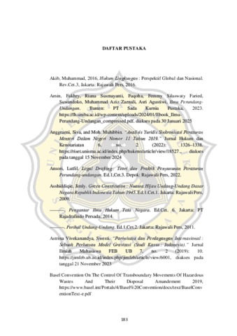 Penelitian ini berdasarkan isu kegiatan impor limbah plastik di Indonesia yang mampu mengurangi kualitas lingkungan hidup. Indonesia membutuhkan 7,2 juta ton plastik setiap tahunnya sebagai bahan baku untuk pembuatan berbagai sektor penting dalam negeri. Sementara itu, sektor daur ulang dalam negeri hanya mampu memenuhi permintaan sebesar 913 ribu unit per tahun secara rata-rata. Untuk mengimbangi kurangnya persediaan plastik, Indonesia mengimpor limbah plastik dari negara lain. Di Indonesia telah meratifikasi Konvensi Basel 1989 melalui Keputusan Presiden Nomor 61 Tahun 1993. Di Indonesia telah terdapat beberapa peraturan tentang perpindahan lintas batas limbah berbahaya, salah satunya adalah Peraturan Menteri Perdagangan Nomor 8 tahun 2024 tentang Perubahan Atas Peraturan Menteri Perdagangan Nomor 36 Tahun 2023 Tentang Kebijakan Dan Pengaturan Impor yang telah melalui beberapa perubahan. Namun, dalam peraturan tersebut masih memungkinkan terjadinya pertambahan impor limbah Non-B3 plastik dan mengakibatkan kerusakan lingkungan. Pada Konstitusi memberikan hak atas lingkungan hidup yang sehat. Selain itu, pada Konvensi Basel Amandemen 2019 telah mengatur bahwa limbah plastik masuk dalam kategori limbah B3. Ada Peraturan Menteri Perdangan tersebut membuat tidak tercapainya tujuan nasional. Penelitian ini bertujuan untuk mengetahui harmonisasi dan sinkronisasi peraturanperaturan terhadap Impor limbah plastik Non-B3 sebagai bahan baku industri di Indonesia serta mengetahui perspektif amandemen Konvensi Basel 2019 terhadap peraturan terkait impor limbah plastik Non-B3 sebagai bahan baku industri di Indonesia. Penelitian ini menggunakan metode penelitian yuridis normatif yang meneliti tentang asas atau norma hukum yang mengatur impor limbah Plastik kategori nonB3 sebagai bahan baku industri dari negara asing. Metode yuridis normatif yang digunakan adalah penelitian hukum yang dilakukan dengan studi kepustakaan atau meneliti data sekunder. Hasil Penelitian ini menunjukan bahwa peraturan impor limbah plastik merupakan kegiatan yang dapat berdampak negatif pada kualitas lingkungan hidup. Sehingga terjadi ketidakselarasan dengan UUD 1945 dan UU PPLH 32/2009 yang memberikan pelindungan hidup. Berdasarkan perspektif Konvensi Basel 2019, peraturan impor limbah plastik di Indonesia khususnya pada Permendag 36/2023 sebagaimana diubah terakhir dengan Permendag 8/2024 masih kurang selaras dengan Konvensi Basel Amandemen 2019 dan perlu diselaraskan. Kata Kunci: impor, impor limbah, limbah, limbah plastik, Non-B3, lingkungan, lingkungan hidup.