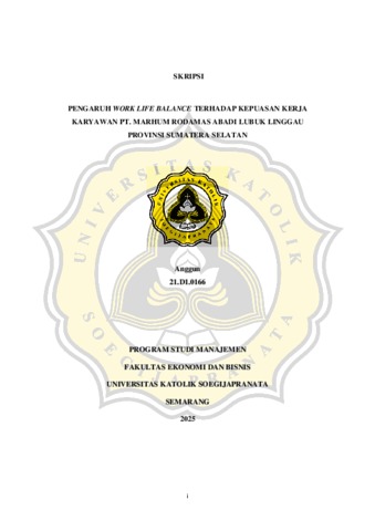 ANGGUN, ANGGUN (2025) PENGARUH WORK LIFE BALANCE TERHADAP KEPUASAN KERJA KARYAWAN PT. MARHUM RODAMAS ABADI LUBUK LINGGAU PROVINSI SUMATERA SELATAN. S1 thesis, UNIVERSITAS KATOLIK SOEGIJAPRANATA.
