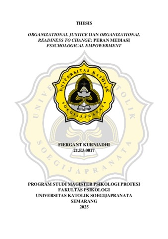 KURNIADHI, FIERGANT (2025) ORGANIZATIONAL JUSTICE DAN ORGANIZATIONAL READINESS TO CHANGE: PERAN MEDIASI PSYCHOLOGICAL EMPOWERMENT. S2 thesis, UNIVERSITAS KATOLIK SOEGIJAPRANATA.