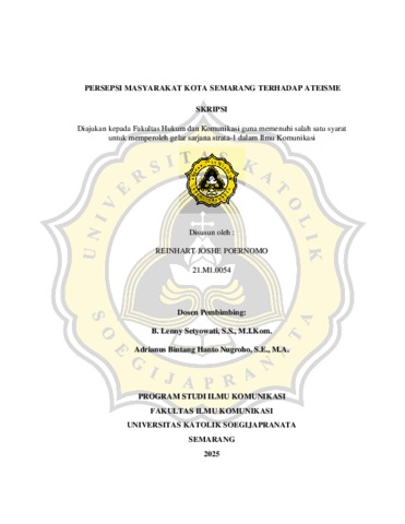 POERNOMO, REINHART JOSHE (2025) PERSEPSI MASYARAKAT KOTA SEMARANG TERHADAP ATEISME. S1 thesis, UNIVERSITAS KATOLIK SOEGIJAPRANATA.