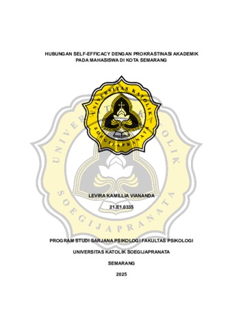 VIANANDA, LEVIRA KAMILLIA (2025) HUBUNGAN SELF-EFFICACY DENGAN PROKRASTINASI AKADEMIK PADA MAHASISWA DI KOTA SEMARANG. S1 thesis, UNIVERSITAS KATOLIK SOEGIJAPRANATA.