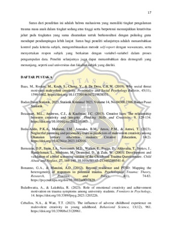 SAMBADA, BAGUS ADI NAWANTRI (2025) TRAUMA MASA ANAK DAN KECENDERUNGAN KREATIVITAS JAHAT: MENGUNGKAP PERAN RESILIENSI PADA MAHASISWA. S2 thesis, UNIVERSITAS KATOLIK SOEGIJAPRANATA.