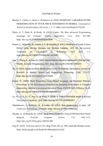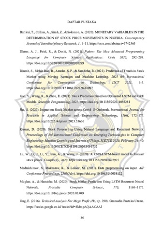 Pasar saham memiliki pergerakan yang sangat dinamis dan berfluktuatif yang dipengaruhi oleh berbagai faktor ekonomi serta sentiment pasar. Dalam menghadapi dinamika pasar saham, alat bantu yang mampu memberikan prediksi pergerakan harga saham menjadi kebutuhan dari investor. Penelitian ini dibuat untuk memenuhi kebutuhan tersebut yaitu mengembangkan sebuah aplikasi prediksi saham berbasis web dengan memanfaatkan model Long Short-Term Memory (LSTM) dan indikator teknikal yaitu Simple Moving Average (SMA), Moving Average Convergence Divergence (MACD), dan Relative Strength Index (RSI). Aplikasi ini dikembangkan bahasa pemrograman Python dan Streamlit untuk memberikan tampilan antarmuka ke pengguna. Data yang digunakan dalam penelitian ini meliputi data historis Indeks Harga Saham Gabungan (IHSG) periode 2000-2024 yang didapatkan dari Yahoo Finance. Lalu, data ini akan melewati tahap pengumpulan data hingga evaluasi data dan hasilnya akan diimplementasikan ke dalam sistem bersama dengan logika analisis menggunakan indikator teknikal. Aplikasi yang dikembangkan ini diuji menggunakan 3 saham yaitu BBCA, ASII, dan ADRO dimana hasilnya menunjukkan Mean Absolute Percentage Error (MAPE) dengan hasil berurutan sebesar 2,46%, 2,99%, dan 4,34% yang menandakan bahwa aplikasi mampu memberikan prediksi yang cukup akurat. Kata kunci: LSTM, saham, prediksi harga, indikator teknikal, Streamlit, machine learning