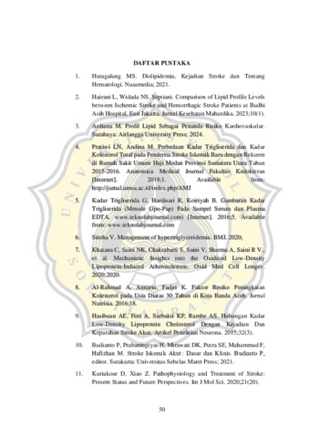 HERMAWAN, VANESSA KAROLINE (2025) HUBUNGAN KADAR LDL DAN TRIGLISERIDA DENGAN TINGKAT KEPARAHAN GEJALA STROKE ISKEMIK PADA PASIEN DEWASA. S1 thesis, UNIVERSITAS KATOLIK SOEGIJAPRANATA.