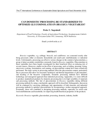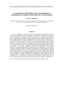 Nugrahedi, Probo Y. CAN DOMESTIC PROCESSING BE STANDARDIZED TO OPTIMIZE HEALTH PROMOTING COMPOUNDS IN VEGETABLES. In: THE 3RD INTERNATIONAL CONFERENCE ON SUSTAINABLE GLOBAL AGRICULTURE AND FOOD.