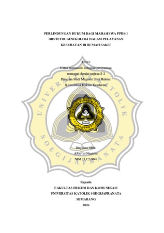 NUGRAHA, ALBERTUS (2026) PERLINDUNGAN HUKUM BAGI MAHASISWA PPDS-1 OBSTETRI GINEKOLOGI DALAM PELAYANAN KESEHATAN DI RUMAH SAKIT. S2 thesis, UNIVERSITAS KHATOLIK SOEGIJAPRANATA.