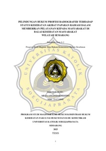 PERTIWI, MEGA AYU INDAH (2026) PELINDUNGAN HUKUM PROFESI RADIOGRAFER TERHADAP STATUS KESEHATAN AKIBAT PAPARAN RADIASI DALAM MEMBERIKAN PELAYANAN KEPADA MASYARAKAT DI BALAI KESEHATAN MASYARAKAT WILAYAH SEMARANG. S2 thesis, UNIVERSITAS KHATOLIK SOEGIJAPRANATA.