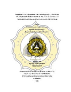 KARTIKOWATI, DERAJAT NUR (2026) IMPLEMENTASI TELEMEDICINE KOMEN (KONSULTASI MEDIS ONLINE) DALAM PEMENUHAN HAK PELAYANAN KESEHATAN PASIEN DI PUSKESMAS KALIWUNGU KABUPATEN KENDAL. S2 thesis, UNIVERSITAS KHATOLIK SOEGIJAPRANATA.