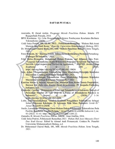Kesehatan merupakan hak bagi seluruh masyarakat dan dijamin oleh negara sebagaimana tertuang di dalam konstitusi. Hal tersebut termuat dalam Pasal 28 H ayat (1) UUD 1945 menyatakan bahwa “Setiap orang berhak hidup sejahtera lahir dan batin bertempat tinggal dan mendapatkan lingkungan hidup yang baik dan sehat serta berhak memperoleh pelayanan kesehatan”. Ketentuan dalam UUD 1945 tersebut kemudian dilaksanakan dengan UU No. 17 tahun 2023 Tentang Kesehatan. Telemedicine dapat menjadi solusi dan karena itu perlu dukungan pengembangannya. Berdasarkan kebijakan dan implementasi penyelenggaraan telemedicine tersebut maka Puskesmas Kaliwungu juga menerapkan telemedicine konsultasi online (KOMEN). Pendekatan masalah penelitian ini ialah pendekatan yuridis sosiologis, yang kemudian dilanjutkan dengan data primer dilapangan atau terhadap masyarakat, sebagai alat pengumpulan data terdiri dari studi dokumen atau bahan pustaka dan wawancara Hasil Penelitian menunjukkan pelayanan telemedicine antar fasilitas pelayanan kesehatan di Puskesmas Kaliwungu sudah sesuai dengan peraturan dan surat edaran dari pemerintah setempat dan tidak melanggar UU No. 17 Tahun 2023 tentang Kesehatan, Permenkes No. 20 Tahun 2019 tentang Penyelenggaraan Pelayanan telemedicine antar Fasilitas Pelayanan Kesehatan, Permenkoinfo No. 20 Tahun 2016 tentang perlindungan data pribadi dalam sistem elektronik, Permenkes No. 24 tahun 2022 tentang rekam medis, Permenkes No. 36 Tahun 2012 tentang Rahasia Kedokteran. Pelaksanaan telemedicine USG di Puskesmas Kaliwungu berjalan cukup baik dan membantu pelayanan maternal, terutama dalam skrining awal kehamilan dan konsultasi lanjutan. konsultasi medis online berbasis hasil USG untuk menilai kondisi ibu dan janin secara awal.Tindakan meliputi review hasil USG, klarifikasi keluhan dan riwayat kehamilan, serta pemberian rekomendasi medis sesuai temuan. Dokter juga menentukan tindak lanjut, baik observasi lanjutan di Puskesmas, edukasi pasien, maupun rujukan ke fasilitas lebih lanjut bila ditemukan indikasi risiko. Ditahun 20242025 ada 40 kasus obstetri yang dilakukan melalui telemedicine KOMEN ke Rumah Sakit rujukan. Konsultasi online ini membantu pengambilan keputusan lebih cepat, meningkatkan efisiensi pelayanan, dan mendukung keselamatan ibu dan janin. Simpulan penelitian ini regulasi yang terkait sudah cukup mengatur pelaksanaan telemedicine antar Fasilitas Kesehatan di Puskesmas Kaliwungu Kabupaten Kendal dan dalam pemenuhan hak pelayanan kesehatan pasien, beberapa hambatan dapat diupayakan kembali dengan peningkatan Sarana prasarana, SDM dan evaluasi terhadap pelaksanaan telemedicine