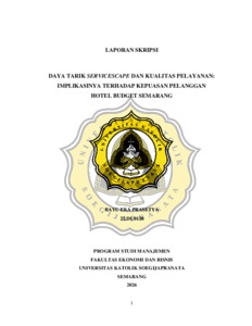 PRASETYA, BAYU EKA (2026) DAYA TARIK SERVICESCAPE DAN KUALITAS PELAYANAN: IMPLIKASINYA TERHADAP KEPUASAN PELANGGAN HOTEL BUDGET SEMARANG. S1 thesis, UNIVERSITAS KHATOLIK SOEGIJAPRANATA.