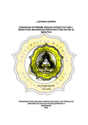 GULTOM, TIUR ANGELINA (2026) HUBUNGAN OPTIMISME DENGAN SUBJECTIVE WELLBEING PADA MAHASISWA PERANTAU ETNIS BATAK DI SALATIGA. S1 thesis, UNIVERSITAS KHATOLIK SOEGIJAPRANATA.
