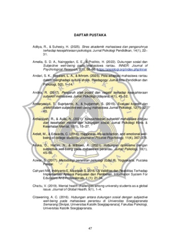 Penelitian ini bertujuan untuk mengetahui hubungan optimisme dengan subjective well-being pada mahasiswa perantau etnis Batak di Salatiga. Hipotesis penelitian ini adalah terdapat hubungan positif antara optimisme dan subjective well-being. Penelitian dilakukan di kota Salatiga dengan menggunakan pendekatan kuantitatif korelasional. Subjek penelitian berjumlah 215 mahasiswa perantau etnis Batak yang dipilih menggunakan teknik purposive sampling. Instrumen penelitian terdiri dari Skala Subjective Well-Being dan Skala Optimisme. Teknik analisis data menggunakan uji korelasi Spearman’s Rho. Hasil penelitian menunjukkan adanya hubungan positif yang sangat signifikan antara optimisme dan subjective well-being dengan nilai Rho = 0,591 dan p < 0,001. Temuan ini menunjukkan bahwa semakin tinggi tingkat optimisme mahasiswa, semakin tinggi pula subjective well-being yang mereka miliki. Kesimpulannya, optimisme berperan penting dalam mendukung kesejahteraan psikologis mahasiswa perantau. Implikasi penelitian ini adalah perlunya program pengembangan diri yang berfokus pada peningkatan pola pikir positif untuk membantu mahasiswa merantau beradaptasi dengan lebih sehat secara emosional.