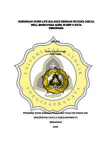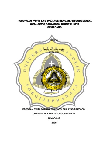 KRISTA, MARIA ANGELINA (2026) HUBUNGAN WORK-LIFE BALANCE DENGAN PSYCHOLOGICAL WELL-BEING PADA GURU DI SMP X KOTA SEMARANG. S1 thesis, UNIVERSITAS KHATOLIK SOEGIJAPRANATA.