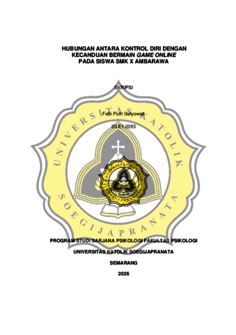 SETYOWATI, FEBI PUTRI (2026) HUBUNGAN ANTARA KONTROL DIRI DENGAN KECANDUAN BERMAIN GAME ONLINE PADA SISWA SMK X AMBARAWA. S1 thesis, UNIVERSITAS KHATOLIK SOEGIJAPRANATA.
