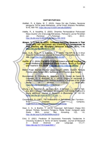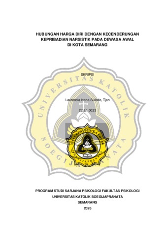 SULISTIO,TJAN, LAURENCIA IVANA (2026) HUBUNGAN HARGA DIRI DENGAN KECENDERUNGAN KEPRIBADIAN NARSISTIK PADA DEWASA AWAL DI KOTA SEMARANG. S1 thesis, UNIVERSITAS KHATOLIK SOEGIJAPRANATA.