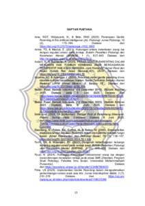 Penelitian ini menguji hubungan antara gentle parenting dengan regulasi emosi pada remaja dan terdapat dua hipotesis minor yang menduga adanya hubungan antara gentle parenting dengan dua strategi regulasi emosi. Responden dalam penelitian ini berjumlah 156 remaja madya (1518 tahun) tinggal bersama setidaknya salah satu orang tua. Lokasi pengambilan data dilakukan di SMA Sint Louis Semarang (offline) dan beberapa SMA swasta di Palembang (online). Alat ukur menggunakan (ERQ) yang dikembangkan Gross dan John (2003), terdiri dari 10 item untuk mengukur strategi cognitive reappraisal dan expressive suppression sedangkan skala gentle parenting yang disusun mandiri oleh peneliti dari teori Sarah Ockwell, yaitu empati, rasa hormat, pemahaman, dan batasan. Hasil uji korelasi spearman's rho diperoleh koefisien korelasi ( rs= 0 , 0 4 3 ; p = 0 , 2 9 6 ) masuk dalam kriteria p < 0,25 artinya tidak terdapat hubungan yang signifikan antara gentle parenting dan regulasi emosi pada remaja. Hipotesis minor (Y1) cognitive reappraisal koefisien korelasi (rs = 0,130; p = 0,053) p = 0,053 kriteria p < 0,05 terdapat hubungan relatif signifikan antara gentle parenting dan regulasi emosi model penilaian ulang kognitif sedangkan (Y2) expressive suppression nilai koefisien korelasi (rs = -0,098; p = 0,111) masuk dalam kriteria p < 0,11 maka tidak terdapat hubungan. .