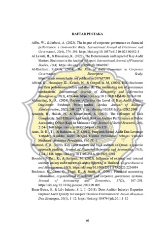 Keywords: Key Audit Matters, kualitas auditor, independensi dewan komisaris, ukuran komite audit, rapat komite audit, kompleksitas akuntansi, DER, ROE dan ukuran perusahaan
