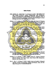| Keywords: | Kualitas audit, Audit Tenure, Kompetensi komite audit, Ukuran Perusahaan, Perusahaan Manufaktur, Kualitas Laporan keuangan |