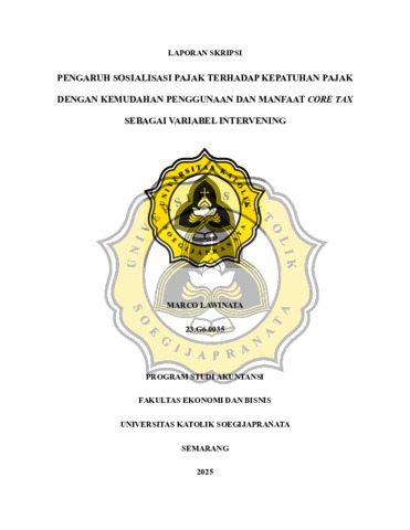 LAWINATA, MARCO (2026) PENGARUH SOSIALISASI PAJAK TERHADAP KEPATUHAN PAJAK DENGAN KEMUDAHAN PENGGUNAAN DAN MANFAAT CORE TAX SEBAGAI VARIABEL INTERVENING. S1 thesis, UNIVERSITAS KHATOLIK SOEGIJAPRANATA.