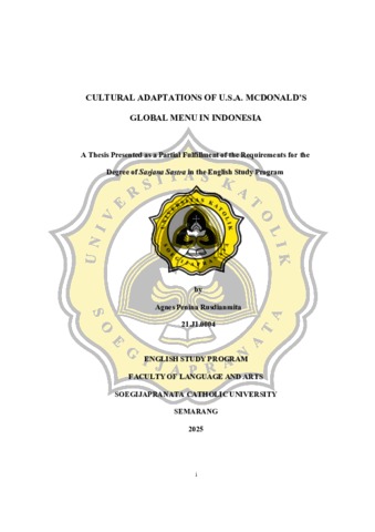RUSDIANMITA, AGNES PENINA (2026) CULTURAL ADAPTATIONS OF U.S.A. MCDONALD’S GLOBAL MENU IN INDONESIA. S1 thesis, UNIVERSITAS KHATOLIK SOEGIJAPRANATA.