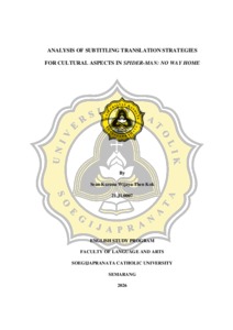 THEN KOK, SEAN KARUNA WIJAYA (2026) ANALYSIS OF SUBTITLING TRANSLATION STRATEGIES FOR CULTURAL ASPECTS IN SPIDER-MAN: NO WAY HOME. S1 thesis, UNIVERSITAS KHATOLIK SOEGIJAPRANATA.