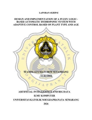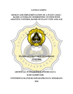 SUTANDANG, STANISLAUS MATTHEW (2026) DESIGN AND IMPLEMENTATION OF A FUZZY LOGICBASED AUTOMATIC HYDROPONIC SYSTEM WITH ADAPTIVE CONTROL BASED ON PLANT TYPE AND AGE. S1 thesis, UNIVERSITAS KHATOLIK SOEGIJAPRANATA.