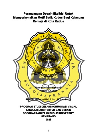 CAHYADI, JERICHO (2026) PERANCANGAN DESAIN EKSIBISI UNTUK MEMPERKENALKAN MOTIF BATIK KUDUS BAGI KALANGAN REMAJA DI KOTA KUDUS. S1 thesis, UNIVERSITAS KHATOLIK SOEGIJAPRANATA.