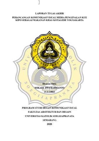 RAHMANTO, MIKAEL DWI (2026) PERANCANGAN KOMUNIKASI VISUAL MEDIA PENGENALAN KUE KIPO SEBAGAI MAKANAN KHAS KOTAGEDE YOGYAKARTA. S1 thesis, UNIVERSITAS KHATOLIK SOEGIJAPRANATA.