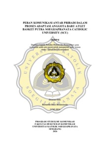 BONANSASOKO, BERNARDUS BIMO (2026) PERAN KOMUNIKASI ANTAR PRIBADI DALAM PROSES ADAPTASI ANGGOTA BARU ATLET BASKET PUTRA SOEGIJAPRANATA CATHOLIC UNIVERSITY (SCU). S1 thesis, UNIVERSITAS KHATOLIK SOEGIJAPRANATA.