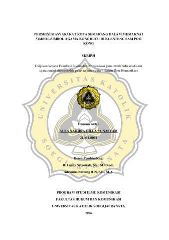 YUNASYAM, AUFA NAKHRA DILLA (2026) PERSEPSI MASYARAKAT KOTA SEMARANG DALAM MEMAKNAI SIMBOL-SIMBOL AGAMA KONGHUCU DI KLENTENG SAM POO KONG. S1 thesis, UNIVERSITAS KHATOLIK SOEGIJAPRANATA.
