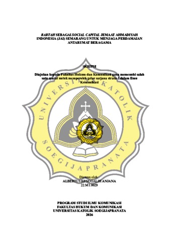 ANJANA, ALBERTUS RENOGALIH (2026) RABTAH SEBAGAI SOCIAL CAPITAL JEMAAT AHMADIYAH INDONESIA (JAI) SEMARANG UNTUK MENJAGA PERDAMAIAN ANTARUMAT BERAGAMA. S1 thesis, UNIVERSITAS KHATOLIK SOEGIJAPRANATA.