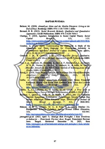 | Keywords: | co-cultural, Jemaat Ahmadiyah Indonesia (JAI) Semarang, perdamaian, rabtah, social capital, |