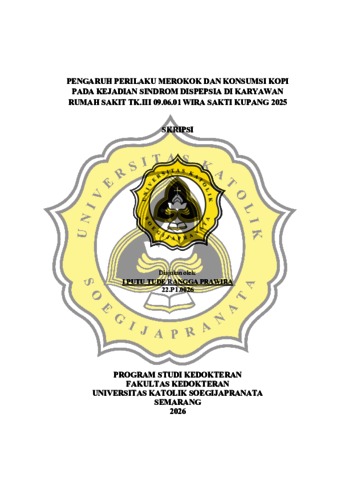 PRAWIRA, I PUTU TUDE RANGGA (2026) PENGARUH PERILAKU MEROKOK DAN KONSUMSI KOPI PADA KEJADIAN SINDROM DISPEPSIA DI KARYAWAN RUMAH SAKIT TK.III 09.06.01 WIRA SAKTI KUPANG 2025. S1 thesis, UNIVERSITAS KHATOLIK SOEGIJAPRANATA.