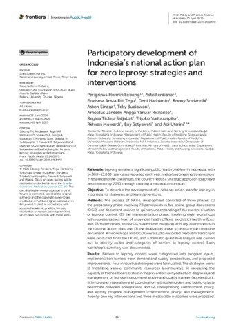 Sebong, Perigrinus Hermin Participatory development of Indonesia’s national action plan for zero leprosy: strategies and interventions. Frontiers. ISSN 22962565