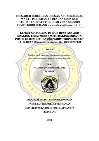 PUSPITASARI, FRANSISCA PUTRI (2014) PENGARUH PEREBUSAN DENGAN ABU SEKAM DAN WAKTU PERENDAMAN DENGAN SODA KUE TERHADAP SIFAT FISIKOKIMIA DAN SENSORI TEMPE KORO PEDANG (Canavalia ensiformis (L.) DC). Other thesis, PRODI TEKNOLOGI PANGAN UNIKA SOEGIJAPRANATA.