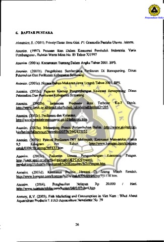 JUMIAH, (2004) STUDI POLA KONSUMSI DAN TINGKA T KONTRIBUSI PROTEIN IKAN AIR TAWAR PADA ORANG DE\\'ASA 01 LIMA DESA SEKIT AR OANAU RA'VA PENING. Other thesis, Fakultas Teknologi Pertanian, Unika Soegijapranata.