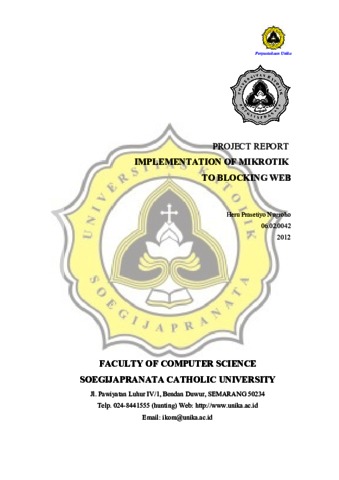 Nugroho, Heru Prasetiyo (2012) IMPLEMENTATION OF MIKROTIK TO BLOCKING WEB. Other thesis, Fakultas Ilmu Komputer, UNIKA Soegijapranata.