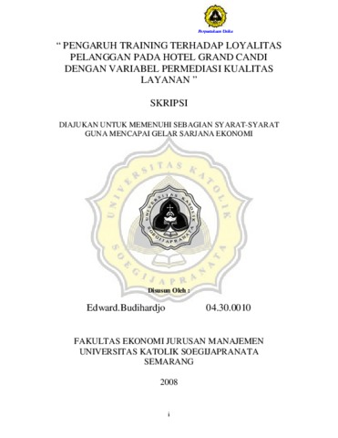 Budihardjo, Edward (2008) PENGARUH TRAINING TERHADAP LOYALITAS PELANGGAN PADA HOTEL GRAND CANDI DENGAN VARIABEL PERMEDIASI KUALITAS LAYANAN ”. Other thesis, Prodi Manajemen Unika Soegijapranata.
