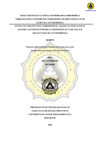 CHRISTIN, SELVI (2010) EFEK SUBSTITUSI FAT REPLACER BERBASIS KARBOHIDRAT TERHADAP SIFAT SENSORI DAN FISIKOKIMIA ES KRIM TEMULAWAK (CURCUMA XANTHORRHIZA). Other thesis, Program Studi Teknologi Pangan Unika Soegijapranata.