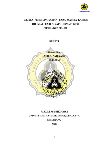 NARIYANI, ATIEK (2008) GEJALA PERSELINGKUHAN PADA WANITA KARIER DITINJAU DARI SIKAP HORMAT ISTRI TERHADAP SUAMI. Other thesis, Prodi Psikologi Unika Soegijapranata Semarang.